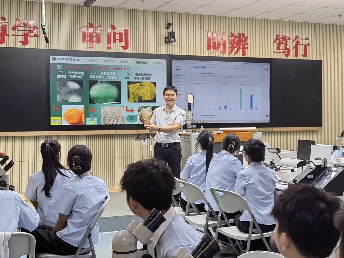 何志方老师指导学生开展教学实验(旅游学院供图)