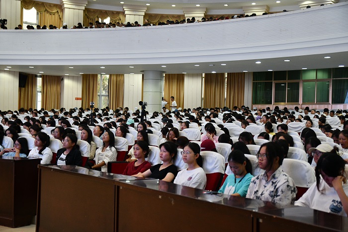 学校后勤公司总经理巴元慧、校务办公室副主任戚睿等有关部门负责人,以及1000余名师生代表参加讲座。