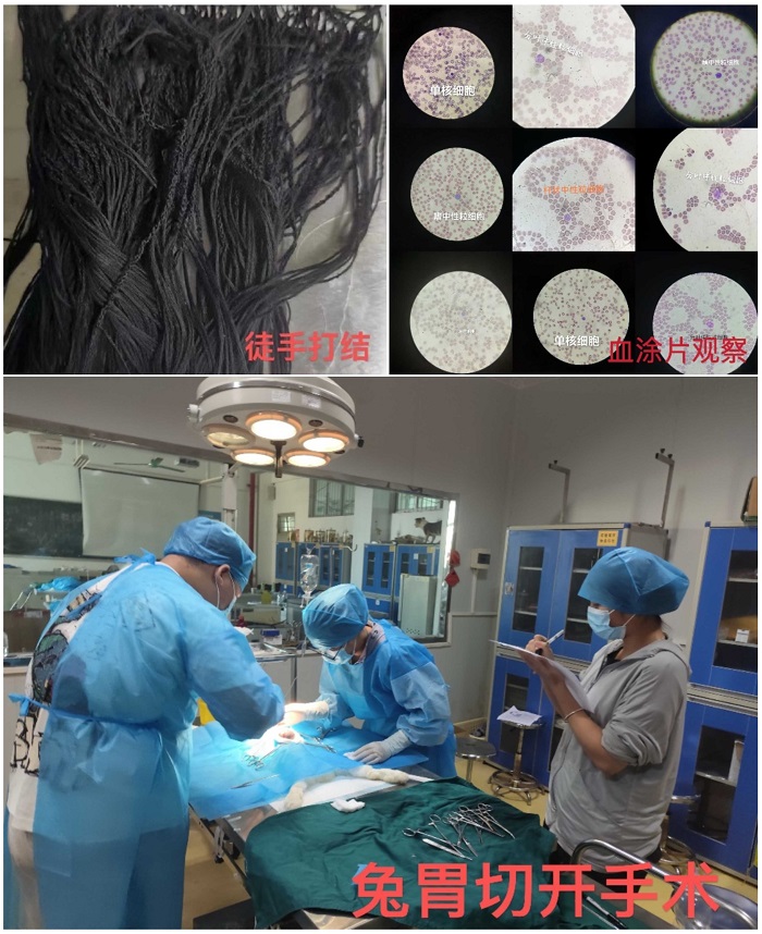 本次比赛公分为理论知识考试、理论知识抢答和实操技能比拼三个环节。赛前,全体参赛同学完整梳理各类知识点,克服知识量大、知识点多的困难。同时,在指导教师的悉心指导下,大量和反复练习徒手打结、血涂片制作、兔胃切开手术等实操项目。在比赛中,我校参赛同学都以饱满的热情投入到比赛之中,他们沉着冷静、团结奋战,展示了扎实的理论知识储备和高超的实操技术水平。