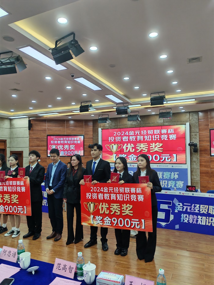 12月3日,由我校经济管理学院王利、蔡耿英两位老师悉心指导下,金融服务与管理专业的9名学生组成的3支队伍参加了第三届金元经贸联赛杯投资者教育知识竞赛,最终荣获2个亚军和1个优秀奖的优异佳绩。