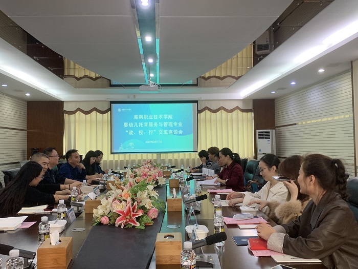 2月17日,海南省卫生健康委员会、海南省妇女儿童医学中心、海南卫生健康职业学院以及海南省幼儿教育学会的代表一行莅临我校,围绕婴幼儿托育服务与管理专业人才培养的实践以及行业发展主题,举办“政、校、行”交流座谈会。校党委委员、校长助理沈振国出席会议。