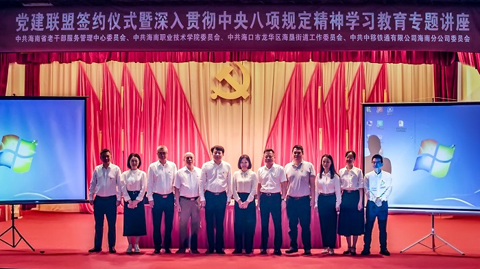 签约仪式上,来自联盟单位下属的50个党支部、300余名党员、干部以及离退休老同志共同见证了这一重要时刻。仪式结束后,海南师范大学党委宣传部副部长胡长青教授围绕“深入贯彻中央八项规定精神”主题,结合典型案例进行了精彩的宣讲,深入解读了中央八项规定精神的核心要义、历史沿革及新时代深化落实的实践要求。