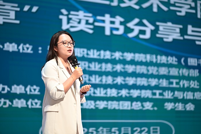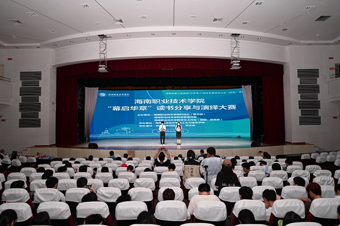 本次大赛由工业与信息学院承办。海南日报记者张婉茜、党委宣传部部长刘炜、马克思主义学院院长温蕾、团委书记方亿群、图书馆馆长王海担任评委,各二级学院党总支书记及学生代表共500余人观看了比赛。