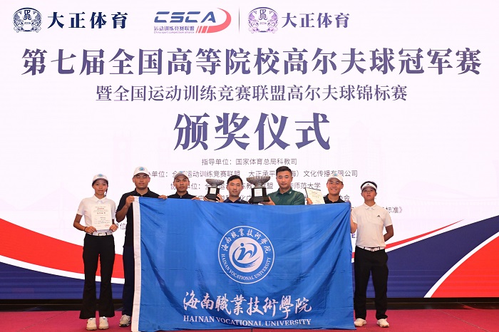 5月23日至29日,第七届全国高等院校高尔夫球冠军赛暨全国运动训练竞赛联盟高尔夫球锦标赛在海南万宁神州半岛高尔夫球会举行。我校高尔夫运动与管理专业选派了5名学生,首次组队参加此项全国性赛事。经过三轮18洞的激烈角逐,我校代表队斩获高职高专组女子团体亚军和男女混合团体季军,男子团体获得第四名,黄冠铭老师荣获“优秀教练员”称号、队员??』?ldquo;优秀运动员”称号,同时,学?;谷倩?ldquo;优秀运动队”称号。
