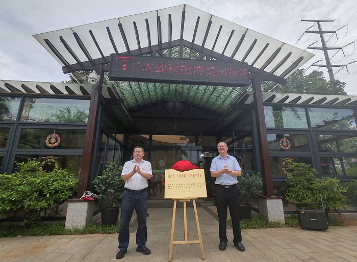 5月28日,海南职业技术学院与海口热带农业科技博览园携手共建“大思政课”实践教学基地的揭牌仪式在??谌却┮悼萍疾├涝熬傩?。学校党委委员、校长助理沈振国和??谑笛檎镜澄榧?、??谌却┮悼萍疾├涝霸擞芾碇行闹魅纬轮救ü餐?ldquo;海南省‘大思政课’教学实践基地”揭牌。