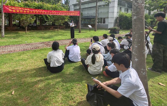 参观结束后,海南职业技术学院马克思主义学院副教授唐美丽以场馆为课堂,为学生们带来了一堂别开生面的沉浸式思政课。唐老师紧扣“绿水青山就是金山银山”主题,以“‘两山论’是如何提出的”这一问题巧妙导入,结合海南本土特色,采用现场调研的互动方式,将理论与实际紧密相连,生动展现出海南“三度一色”的生态优势。唐老师进一步引导学生思考:学习“两山论”,我们该如何践行?作为大学生,我们能做些什么?课堂在深度的探讨与思索中,让学生深刻认识到生态?;び刖梅⒄沟谋缰す叵?,明晰自身在践行绿色发展理念中的责任。