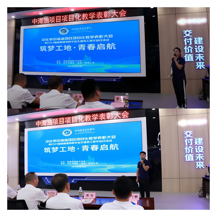 6月20日,工业与信息学院在中化学中海油深海能源开发总指挥部基地项目举办“项目化教学表彰大会暨智慧建筑群2025届毕业生建筑工地毕业日活动”。中化学建设(海南)有限公司副总经理助理李小平、海南职业技术学院教务处副处长李少敏、工业与信息学院副书记蔡慧敏出席活动。