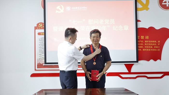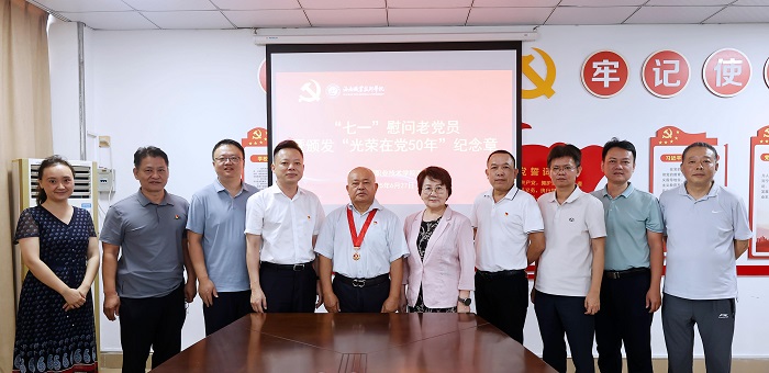 在庆祝中国共产党成立104周年之际,为弘扬党的光荣传统,传承红色基因,凝聚奋进力量,学校党委举行“七一”老党员慰问暨“光荣在党50年”纪念章颁发仪式,学校党政领导、部分中层干部参加仪式。