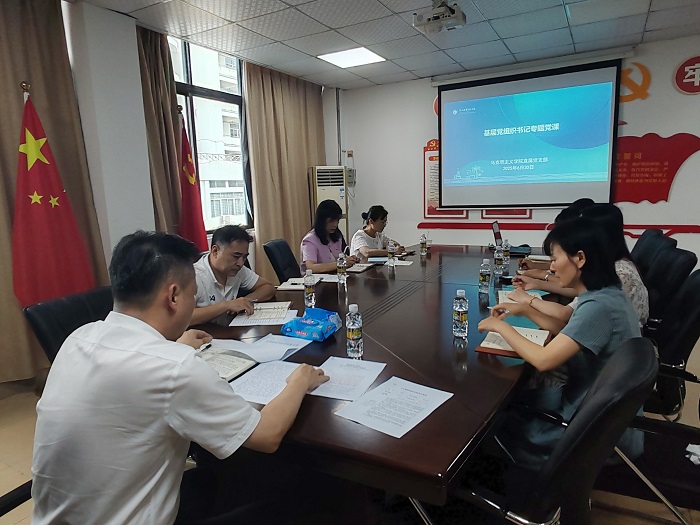 6月30日,党委书记周炳才为马克思主义学院直属党支部全体党员讲授深入贯彻中央八项规定精神学习教育专题党课。