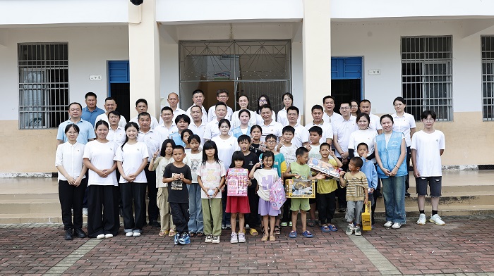 与新园村小学师生合影(党委宣传部供图)