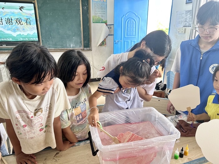非遗漆扇课上孩子们动手制作漆扇(艺术学院供图)