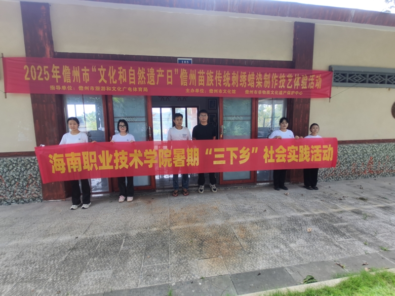 近日,我校旅游学院“云上非遗”三下乡实践团队走进儋州市南丰镇苗家村寨,以专业赋能非遗传承,用青春力量为苗族蜡染技艺注入时代活力。活动成果获学习强国、南海网、新海南等多家省级媒体聚焦报道,彰显了我校青年学子在乡村振兴与文化传承中的责任担当。