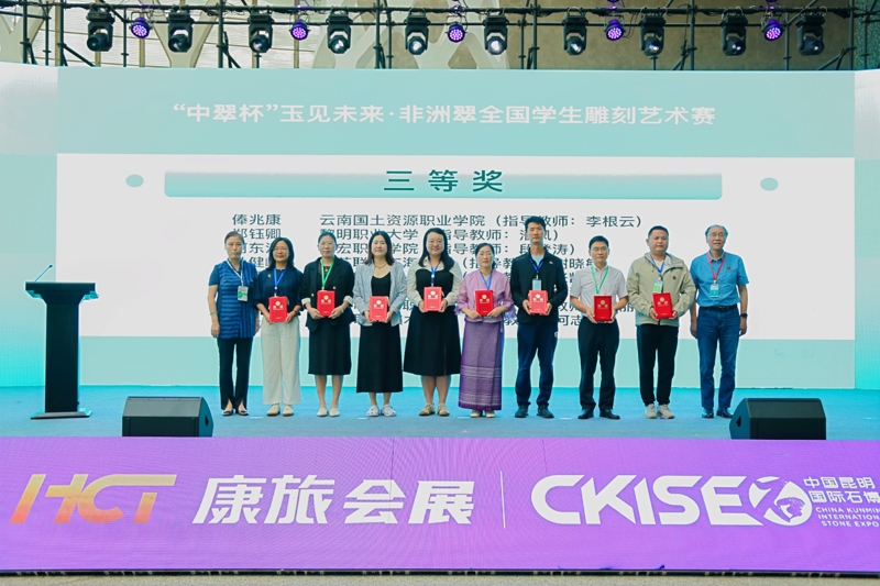 7月12日,在昆明滇池国际会展中心落幕的“中翠杯”玉见未来·非洲翠全国学生雕刻艺术大赛中,我校珠宝专业学生李团、韦俊凭借精湛的技艺,双双载誉而归。其中,李团同学作品荣获三等奖,韦俊同学作品获优秀奖。