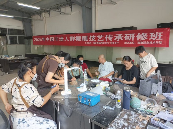 8月22日,2025年中国非遗人群椰雕技艺传承研修班结业仪式在我校举行。海南省旅游和文化广电体育厅非物质文化遗产处一级主任科员王君、海南职业技术学院副校长李琳娜、海职院继续教育学院常务副院长黄炜等出席结业仪式。