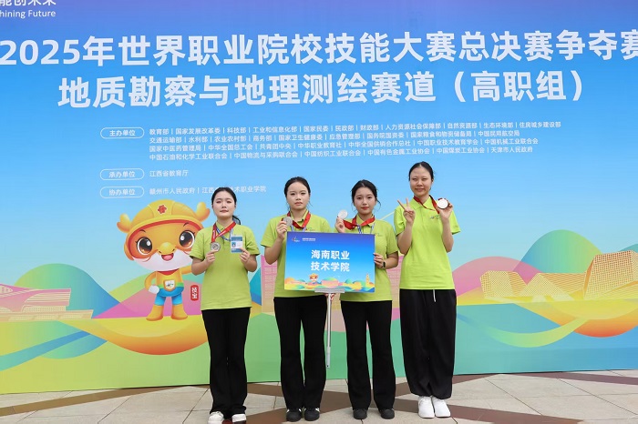 8月26日至30日,2025年世界职业院校技能大赛总决赛争夺赛地质勘察与地理测绘赛道(高职组)在江西应用技术职业学院举办。我校旅游学院珠宝专业陈昭玲、郑妙娜、吴严玉、曹有涵四位同学组成的参赛队,从全国105支参赛队伍中脱颖而出,斩获大赛银奖。