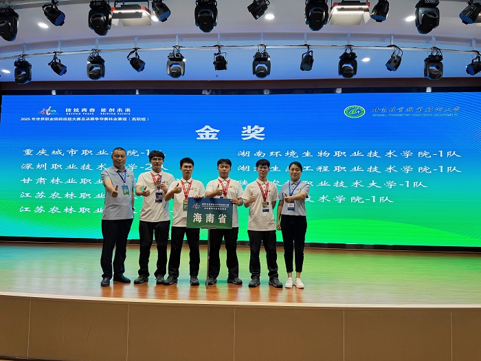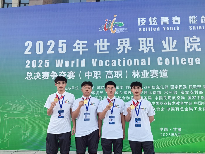 8月26日至30日,2025年世界职业院校技能大赛总决赛争夺赛林业赛道高职组比赛在甘肃天水举行。由我校热农学院教师汪洋、左金富带领,朱少明、谭奇存、林玉斌、尚庆泽四位同学组成的参赛队,凭借扎实的专业知识和出色的专业技能,从众多参赛队伍中脱颖而出,荣获金奖。