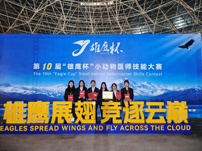 8月26日至27日,由中国兽医学院院长联席会、中国兽医协会、深圳市瑞鹏公益基金会联合主办的第十届“雄鹰杯”小动物医师技能大赛总决赛在青海大学举办。由我校热农学院教师连漪、代小童、王绥平指导,畜牧兽医专业姚瑛琪、林鑫书、吴雪姣、陈嘉怡四位同学组成的参赛队,从全国111所高等农林院校中脱颖而出,荣获团体二等奖。连漪、代小童、王绥平老师获得优秀指导教师奖。