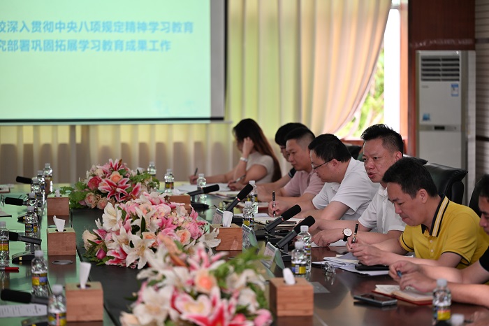 会议传达学习习近平总书记关于深入贯彻中央八项规定精神学习教育的重要指示和中央党的建设工作领导小组会议精神及省委常委会会议暨省委党的建设工作领导小组会议精神,从主要工作、取得成效和存在不足等方面对学校深入贯彻中央八项规定精神学习教育进行了总结。